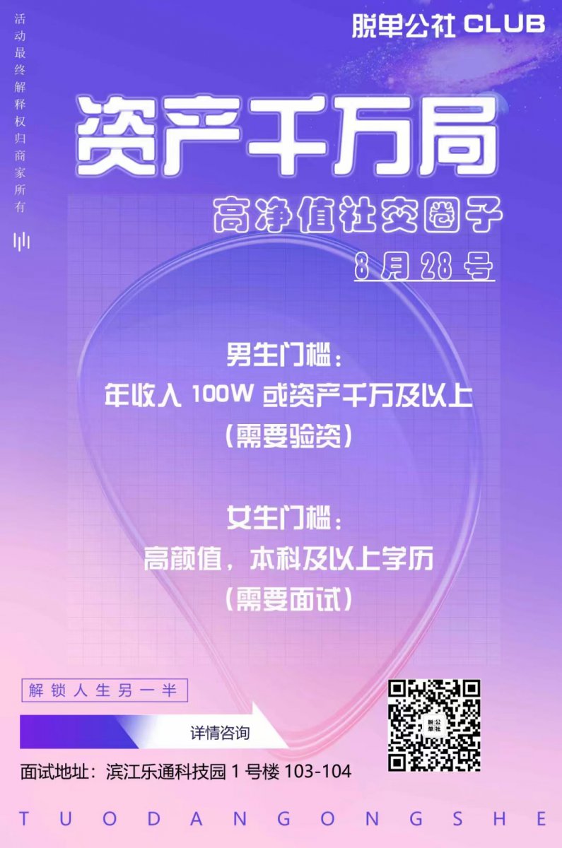 男生门槛:年收入100W 或资产千万及以上(需要验资)
